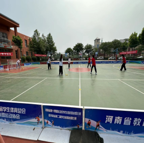 河南省第十四届运动会学生组校园冰雪比赛由河南省教育厅、河南省体育局联合主办,郑州航空港经济综合实验区教育文化卫生体育局、郑州一中国际航空港实验学校承办,项目设有陆地冰壶、软式曲棍球(陆地冰球)、越野滑轮(陆地滑雪),分设小学组、特教组、中学组(初中、高中)和大学组等5个组别,吸引了来自全省54所学校的代表队共630余名学生参加。
