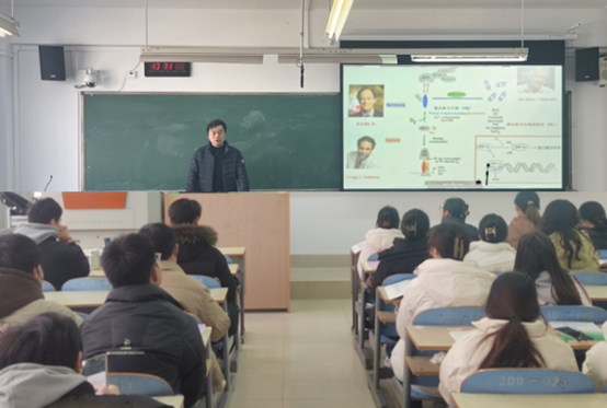 韩鸿鹏简要回顾了2019年诺贝尔奖获奖者的相关科研经历,然后,结合具体事例,对三位获奖者的成就进行了讲解,勉励广大青年学生要珍惜大学四年的黄金时光,努力学习,为实现自己的梦想不懈奋斗。