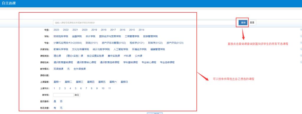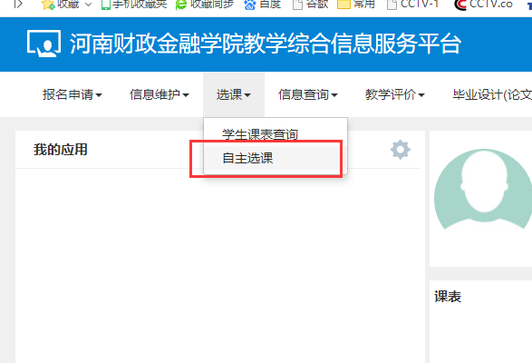 1.登录新教务系统,在“选课”菜单下点击“自主选课”,见下图。