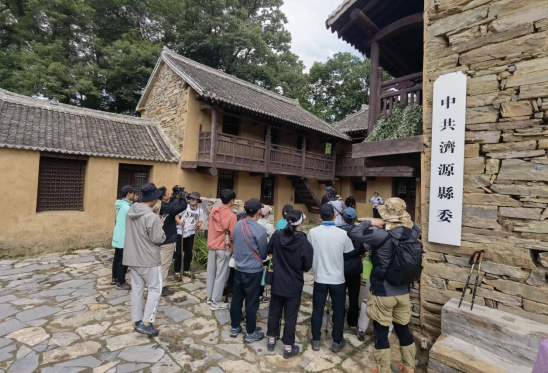 2023年6月10日--13日,威廉williamhill体育组织2020级社会体育指导与管理专业专项班师生到济源市王屋山开展了户外实践活动。在河南省海拔最高的行政村——水洪池村,全体师生开展了系列红色教育。师生一行首先拜访了老支书、济源市十大当代愚公苗田才老先生,当年他充分发挥党员干部先锋模范带头作用,带领全村人民发扬愚公移山精神,遇山筑路、遇岭凿洞,全凭手凿肩挑,历时十余年,终于打通了水洪池村的进出通道。目前,水洪池村依靠花卉育种、生态休闲产业脱贫致富,是王屋山干部学院名为“十年修一路”的重要现场教学点。师生们还拜会了村里98岁高龄的老党员李牛柱老先生,抗日战争时期中共济源县县委抗日政府就设在老人家里。全体师生党员在鲜红的党旗下重温入党誓词。