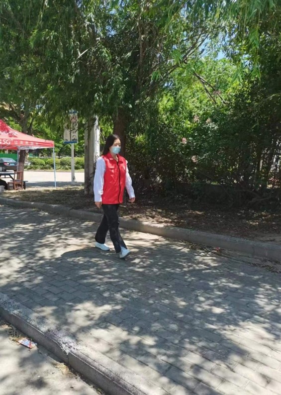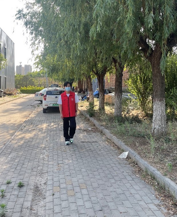 19健康服务与管理一班赵若霏同学时刻告诉自己,作为党员要发挥模范带头作用,凡事冲锋在前,用自己的实际行动践行时代的责任与担当。经过这几天的志愿服务,她深刻体会到疫情防控工作者的艰辛,也感受到作为一名疫情防控志愿者的使命感和责任感。